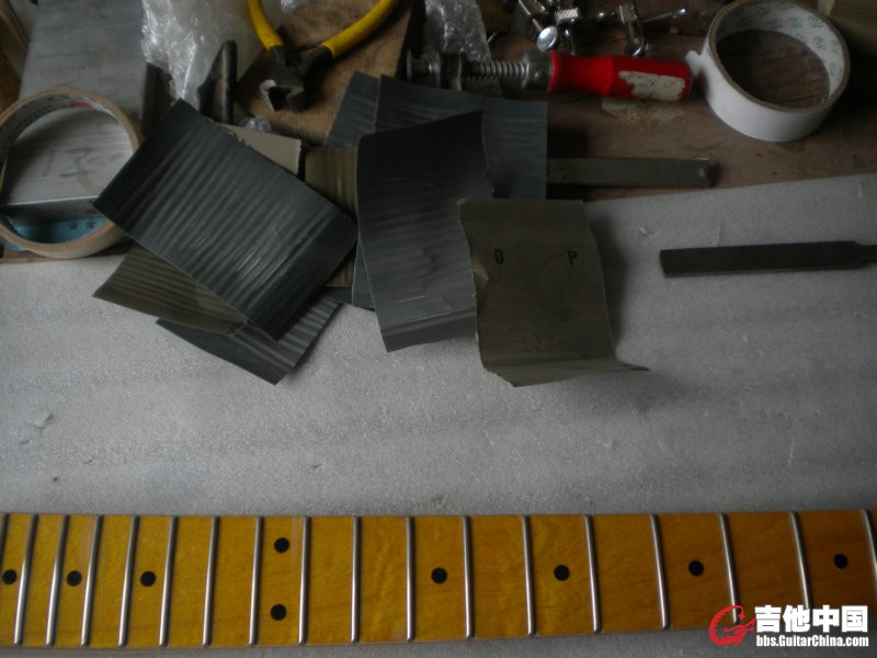 换品丝重点不是拔下,砸上品丝,而是让品丝在一个合理的截面形状下各品互相保持一定精度的平直度。所有难点不是拔下和装上,而是怎么处理那个形状和平直度。
