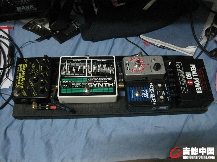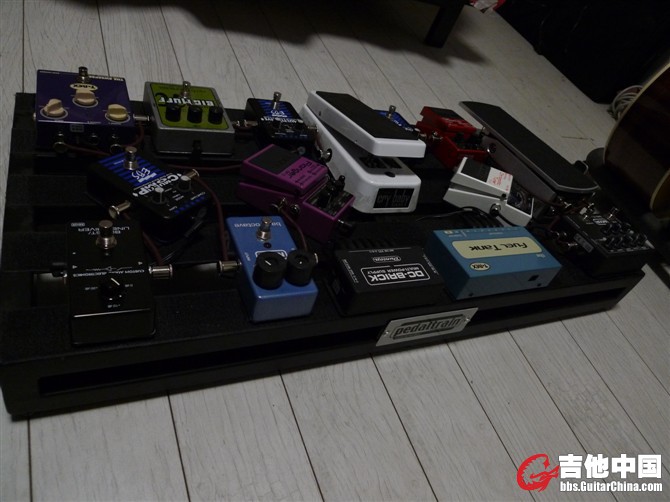 我的板子上依次是EBS 合唱, EBS 八度, EBS 滤波,BOSS 均衡, TURBO RAT, TC 调音表,1SPOT电源