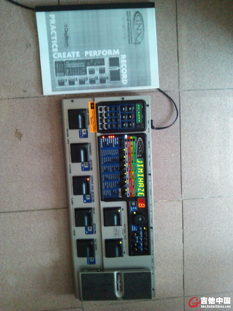 诚信交易,首先说明:美产Digitech 的通病,第一个电位器失灵(最后一个图),但可以用数据滚轮代替它。或者可以花几块钱买个电位器找个师傅换了。我是不想拆开这庞然大物才一直用数据滚轮代替它使用的。 |