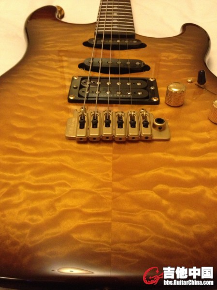 这琴的音色很全面,我能玩得风格它都能胜任。值得一提的是这琴的原声,不用接效果器听着都非常的舒服,动态表现的相当细腻。单单双的西摩邓肯,琴颈的单线圈能出fender类的音色,琴桥的双线圈的音色和GIBSON很接近。 根据个人习惯,我都会把中间的拾音器的高度调低一些,免得碰到拨片。