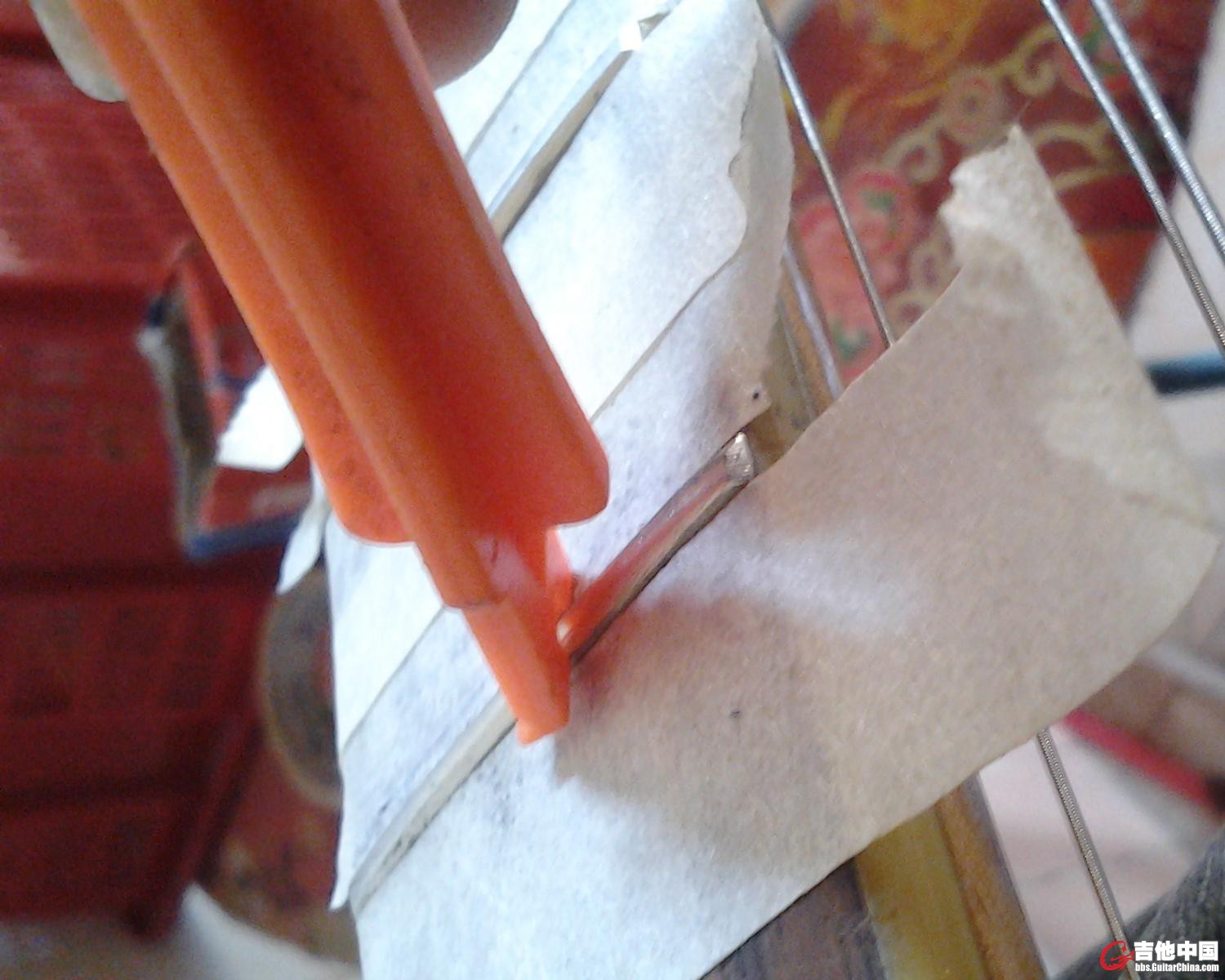 在本版看了修琴师傅,怎么找平指板和打磨品丝的帖子。自己动手找平了指板品丝,我的吉他打品,指板很笔直。有些品位的品丝高了。