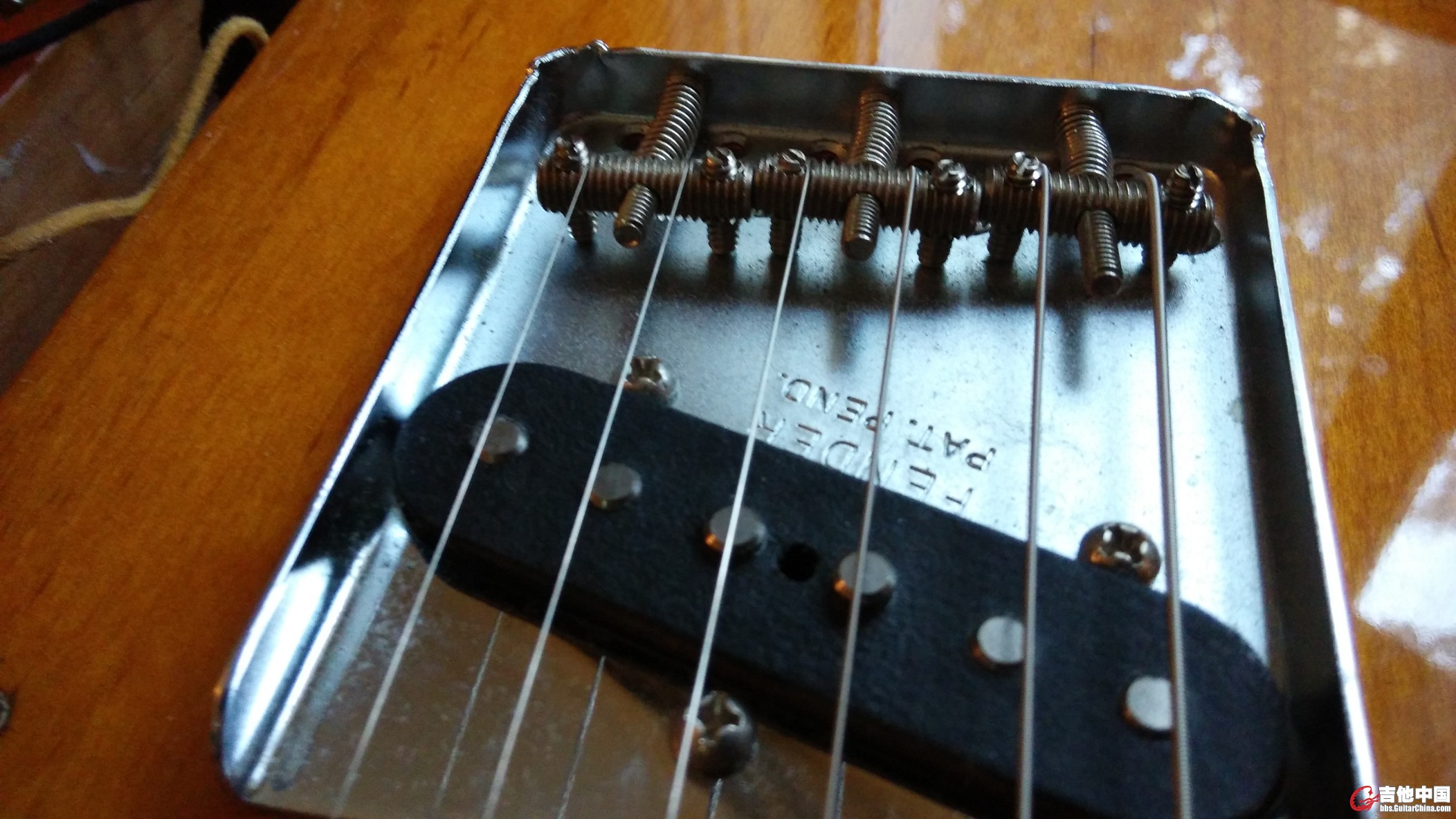 图7:同时再做好琴桥的高度调试,琴颈琴桥是需要一起调节才能达到最好效果的。调节过程到此结束,剩下的就是原位装回去就好了!注意拾音器高度可以自己再做调整,原理和功能不多讲,大伙儿比我明白