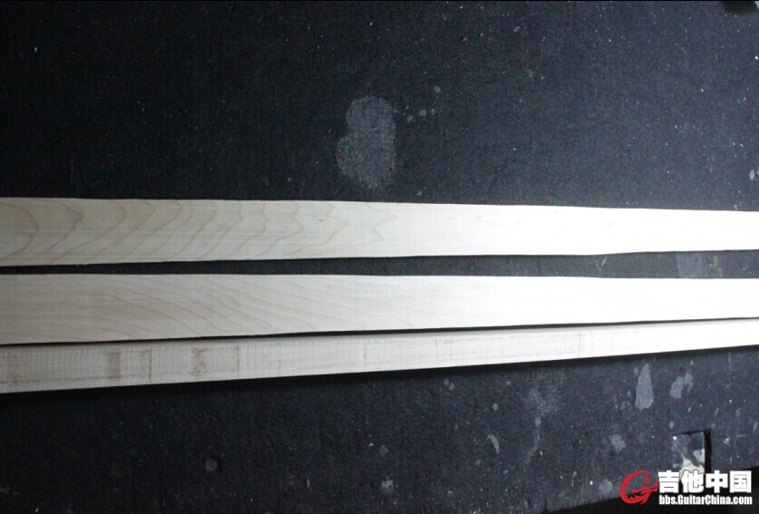 继续,选料,这把琴的琴颈选择的是常见的加拿大枫木。三拼径切粘合。34寸弦长,关于弦长的影响后面组装的时候在和各位交流探讨。