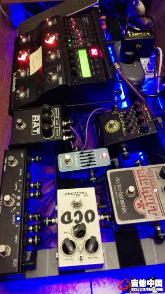 客气了,关于TC的失真过载音色我只能说我觉得有点像大G接FUZZ得音色 鼻音比较好但是不是那种哐哐哐的感觉 比较黏 不是很烈的感觉 因为我比较喜欢大马勺子的音色 你看我的块也知道 所以我不是很喜欢TC的失真 具体你说动态其实我也没发解释 因为我是搞音频的 所说的动态跟吉他手所以为的动态不是一个东西 我只能按照你现在的理解方式说就是 音量钮关小也很出味道 我觉得TC的失真比较适合摇滚和布鲁斯 就是比较传统的音色 不是说不好 只能说不适合我 反正我不喜欢 只把它当周边 很强大 连BOOST块都剩了 你看我瘦身后得版子 主失真是 TONE BONE SOLO 节奏都用它 SOLO的时候可以用TC上得BOOST激励下 音量马上增大跳出来 再加上TC的延时 SOLO结束后关闭 还原节奏音色 然后过载就用KEELY的TS9 CLEAN的时候用箱子的音色 然后用RC BOOST激励下 音色水灵的很 不过你要注意下 如果按照我的这个方式用的话 连接有点烦 我是吉他进 哇音踏板 然后进RC 然后进KEELY TS9 然后进TONE BONE 然后输出到音箱的INPUT 然后TC是进音箱的LOOP ernie ball的音量踏板进TC得音量踏板接口 所以 我的版子输出和输入最少要用到4条长线 一条吉他输入 一条失真输出 两条TC输入 输出 希望对你有帮助 |