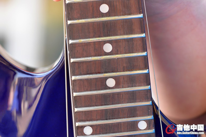 然后琴行用砂纸之类的打磨了,所以后面那些品丝看起来打磨的不齐。并且感觉磨损到了指板,很明显。