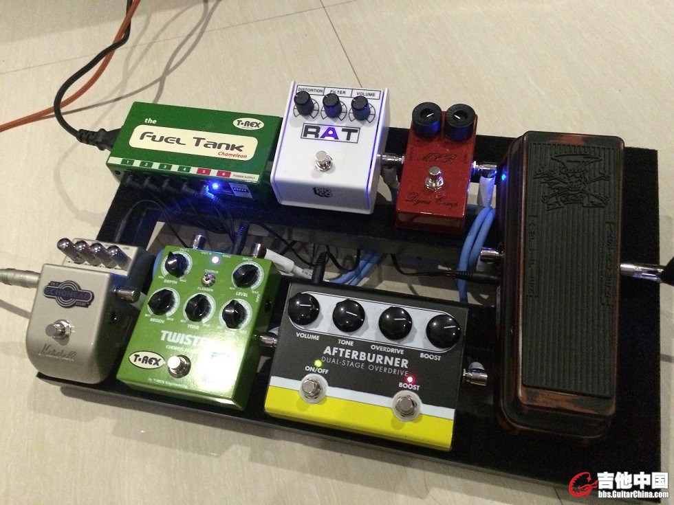 greenline1987 发表于 2015-1-15 10:55 我用JOYO的效果器板,刚好可以把哇音踏板的四个脚柱放进板子的空隙里。