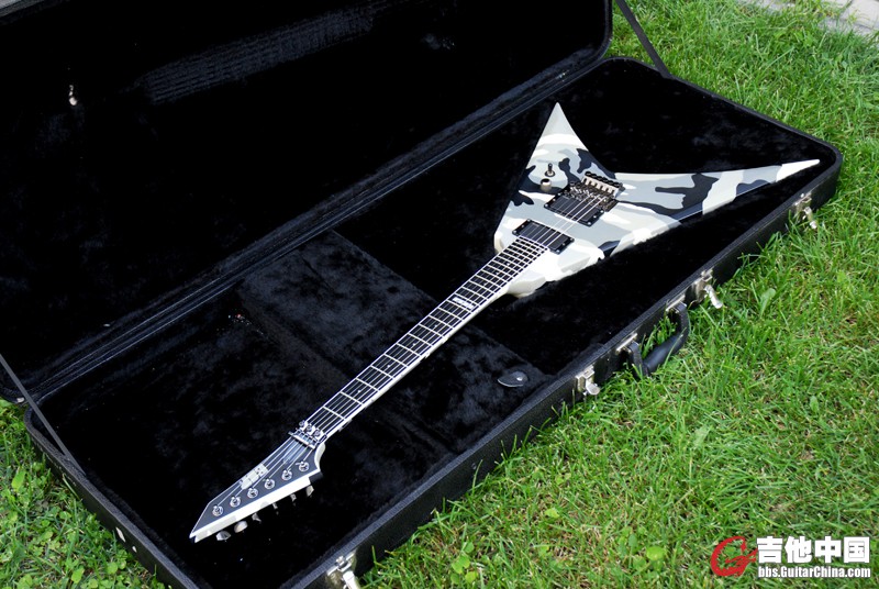 ESP SV II URBAN CAMO 日产,迷彩;穿体结构,桤木琴体,枫木琴颈,乌木指板,EMG 81/81 主动拾音器,Floyd Rose 原装琴桥;琴盒附件齐全。