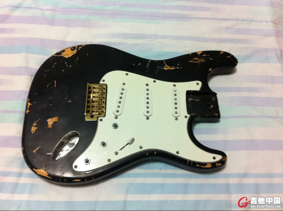 自己做旧的第一块琴体,琴体是淘宝245一块买的,买的目的就是练习做旧,椴木琴体,但是绝对不是那种黑心垃圾木,从我打掉的油漆就能看出来,没有杂色什么的,买回来我把油漆打到最薄,然后进行的做旧处理,最后又把躶木进行了火烤并涂了虫胶漆。拾音器仓本来是3单,被我改成游泳池仓, |