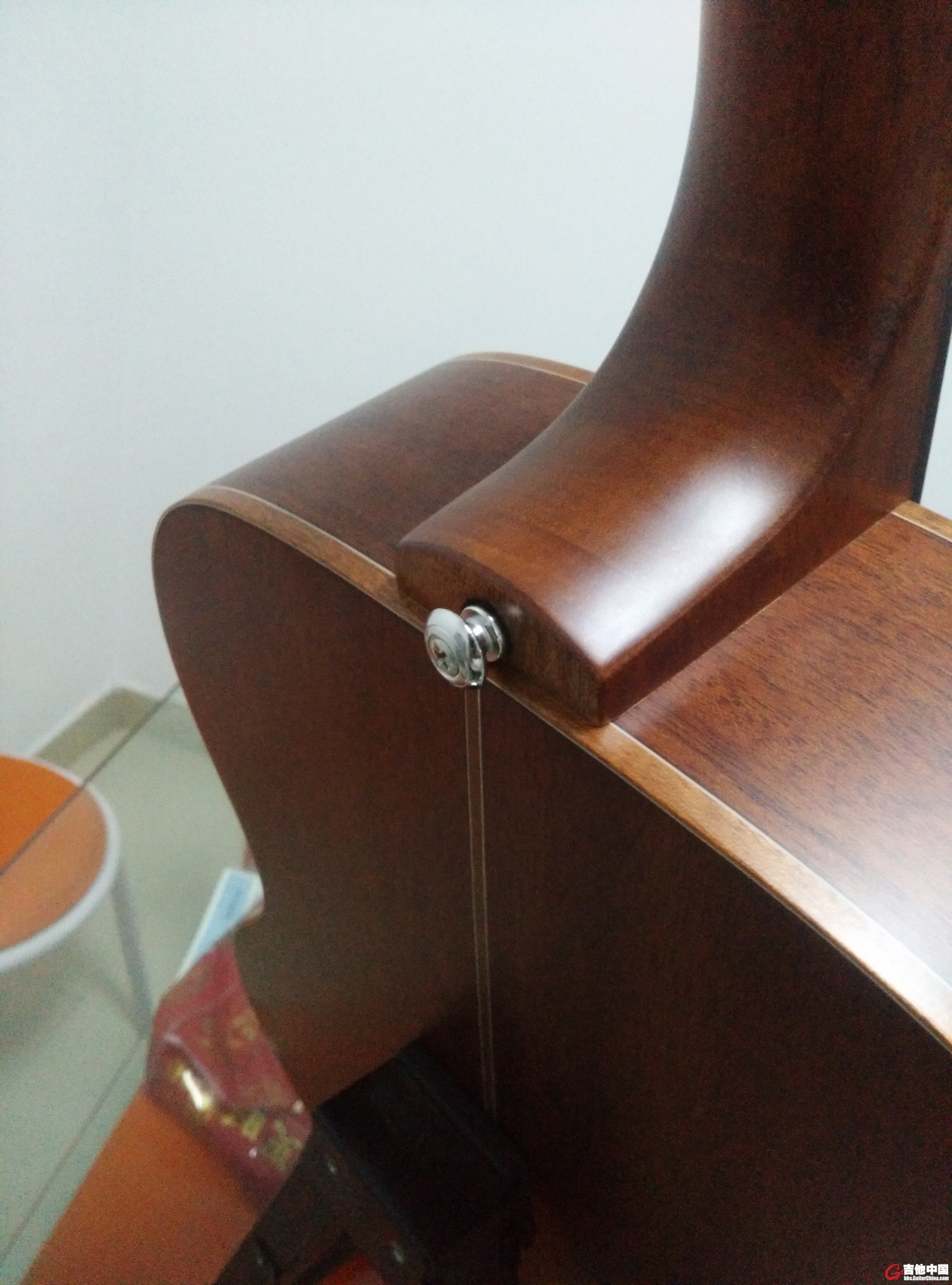 里面的加强设计看起来很放心,应该不会像一些千把块的国产琴用一两年就变形的地步吧,这个等以后再来补充评价吧。
