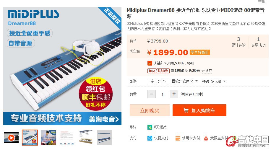 详细描述: 本琴基本算全新,屏幕和按键的膜都还没撕,基本没摸过超过5次,每次最多30分钟,原价一台带架子踏板和琴包一共2135元网购回来,打算用来学习钢琴的,买回来确实没有时间去学,一直放在琴包里面保管,全铝金属材质,接近全配重手感。128种音色效果,可用于音乐制作和演出,琴自带德国梦幻音源,接音箱即可演奏,低价1600一套出了,有兴趣的朋友加Q联系337001881 电话15007771004
