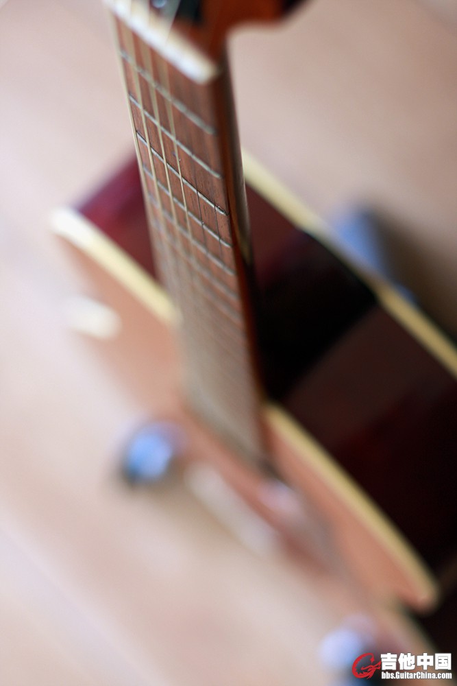 配置:面板红松,背侧桃花心木,琴颈整根桃花心木,琴桥和指板是马达加斯加玫瑰木;