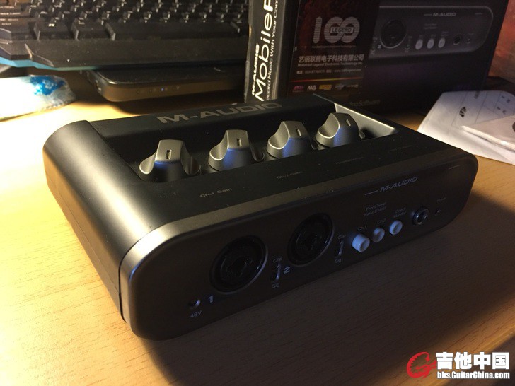 2个卡侬的平衡式话筒输入口,带48V供电、增益旋钮和信号/过载灯,小三芯的立体声话筒输入口,2个大三芯的平衡式高阻乐器/线路输入口
