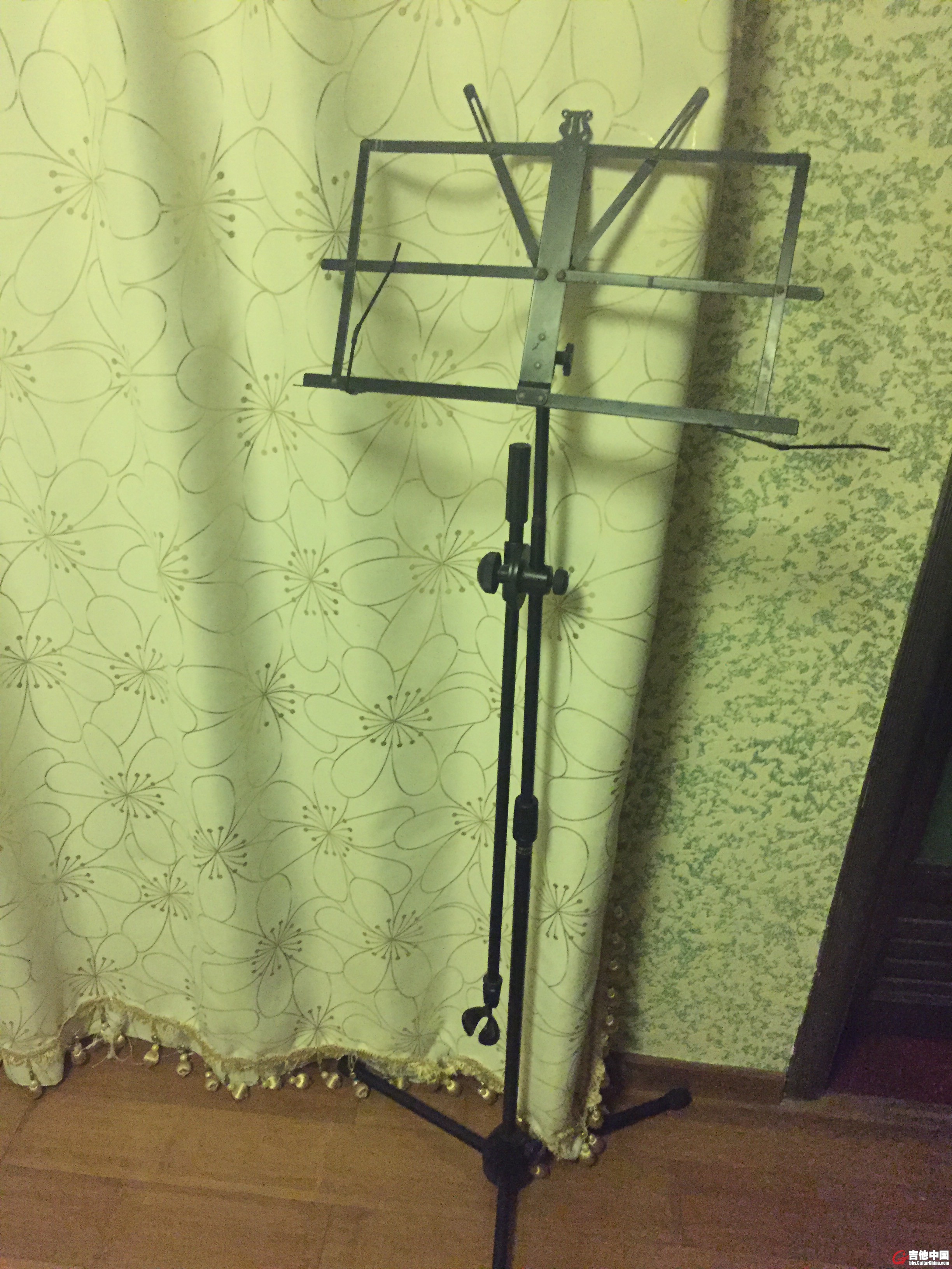 弦兄弦弟 发表于 2016-3-31 11:23 我做的没你这么麻烦,我是买了麦架与折叠谱架各一个,把谱架上半截锯下来,再把麦架顶端锯掉一小截,把两个 ...