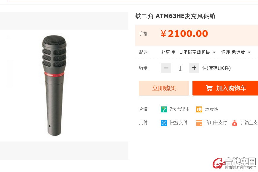 铁三角ATM63懂行的来、话筒标志不见了 。但是绝对真品。网罩有点小变形、不 影响使用。定位好像是 乐器麦、但是好像都行.成色党 可以不看了.声音超级清晰、比一般动圈话筒声音大的多。高频尤其突出。 |