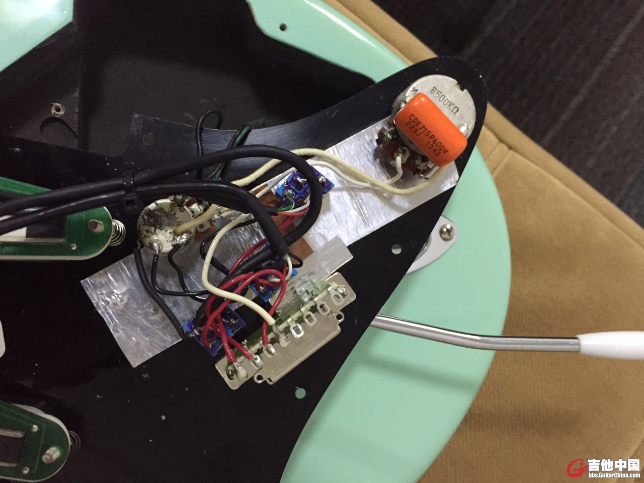 黄色的 是复古黄的壳子,不是用旧了的,前档六弦位置有磕碰。三个切单档位对应三个拾音器,可以快速实现单单双、双单双等组合,这三个拾音器切都是Dimarzio适合做切单的拾音器,并且,切换单线圈有两种模式,大功率单和小功率单,其他配件均是日产,经久耐用!这些配件的价格就不便宜,加上拾音器,以及安装费用,有喜欢的可以了解一下,1800包邮! |