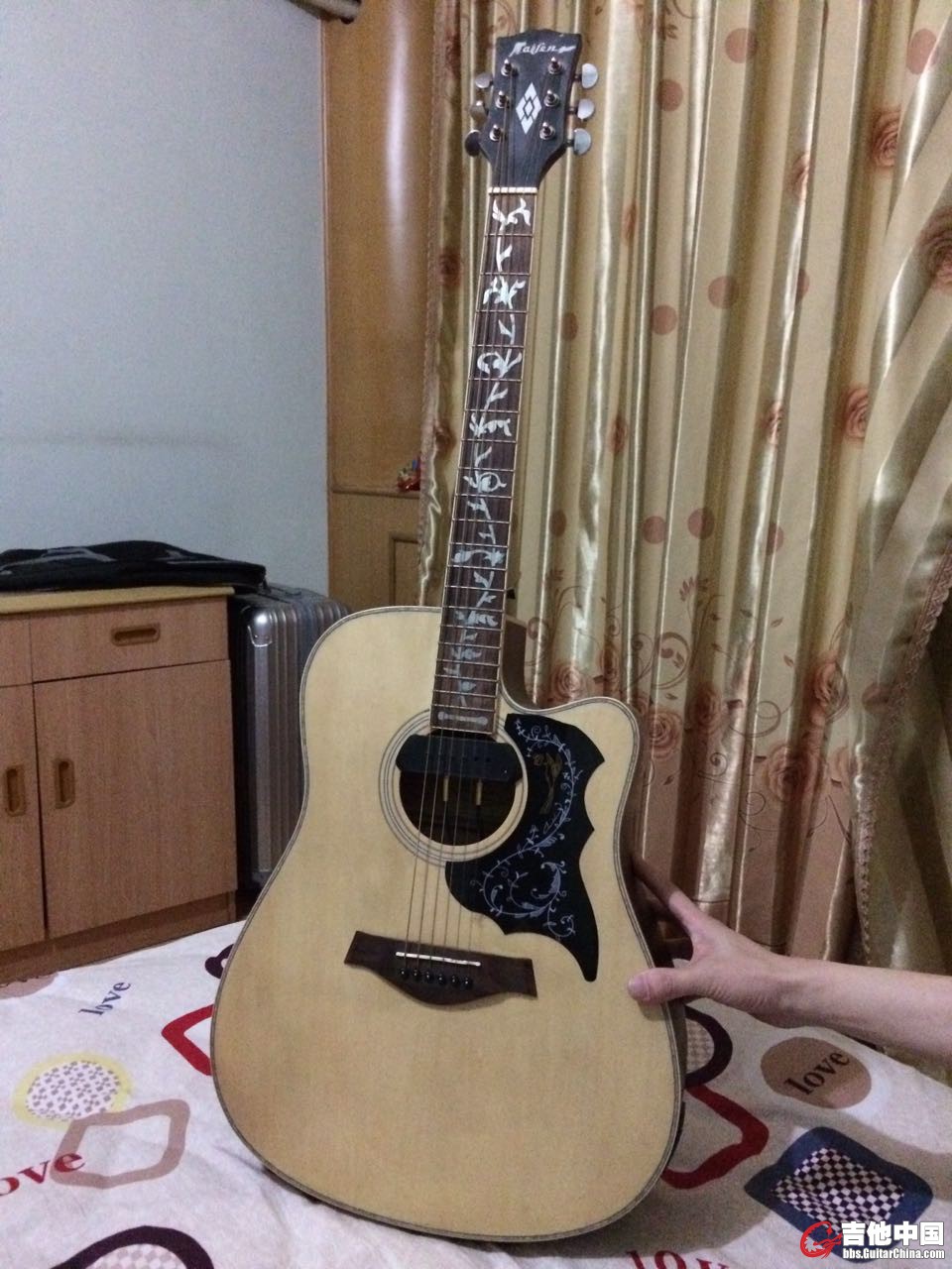 买来试了试音,一直用不上,拾音器全新。闲置。出天津滨海新区附近。吉他41寸,琴弦低,手感好,本身就是电箱,带调音表,琴颈自己贴花,护板自己换的。送琴包,变调夹,一堆拨片,科林线,不刀不外地,面交,连吉他一起,不拆了,麻烦。 |