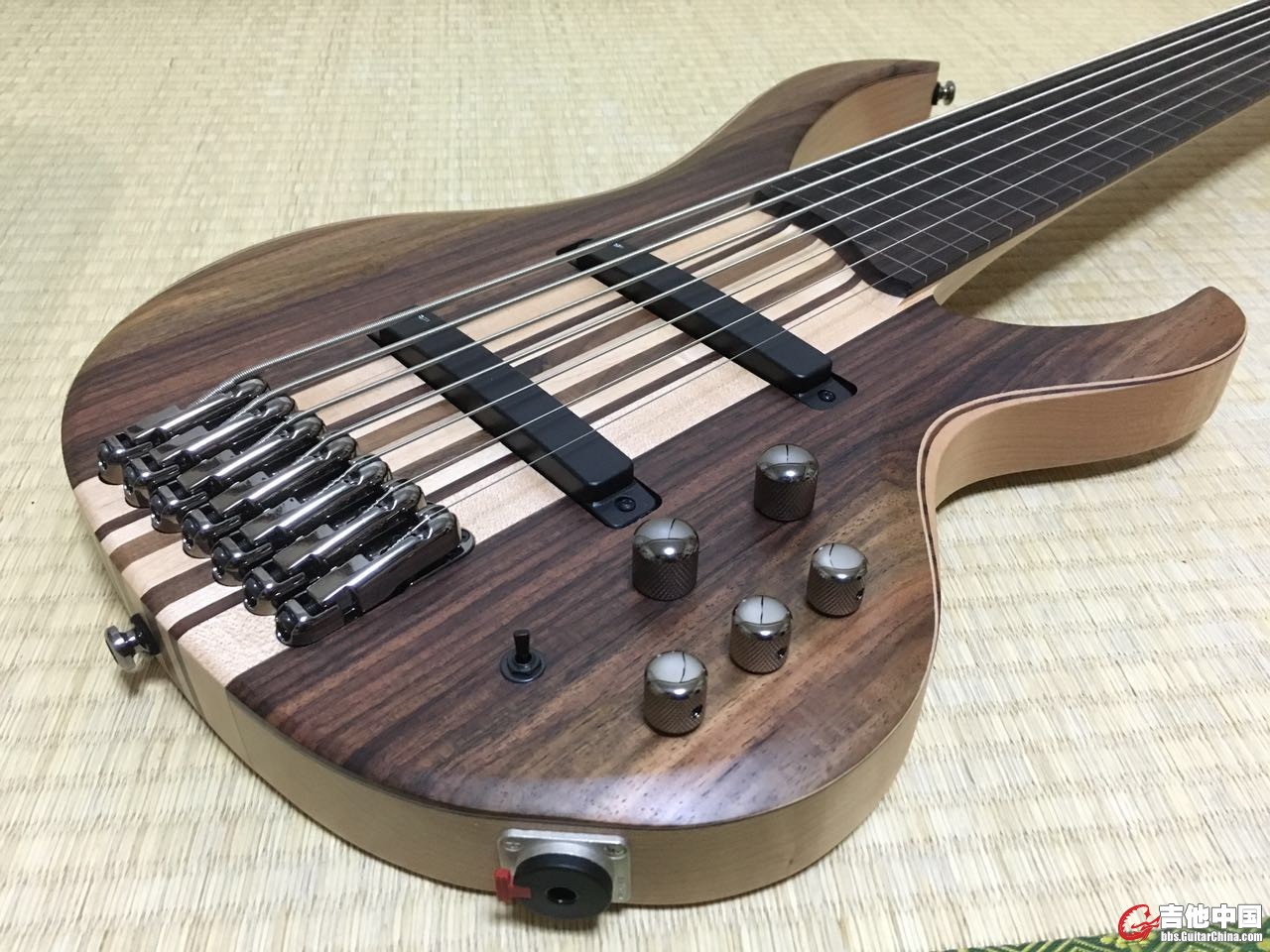 BTB7F,7弦无品,整体9成新,琴颈背后有一处米粒大小的磕碰,不影响使用。手感极佳,声音可调范围光,适合各种音乐类型。