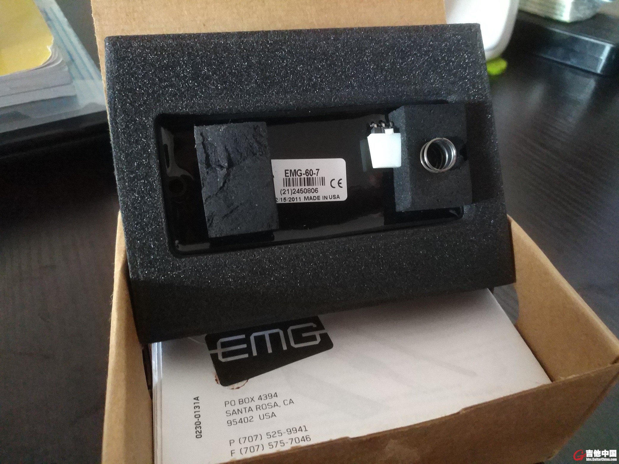 拾音器的音色和各方面质量都没问题,成色也非常好,完全可以放心购买~ 之前这两块都是和其他主动 EMG 直接插拔互换,所以原装电位器和连接线都是全新未开封,包装盒也保存地很好,说明书和电路图也都在,方便更换电路时参阅。包装盒里还各自带一个 EMG logo 贴纸。