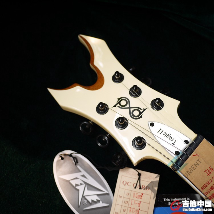 24品(12品铝制鲨齿品记), 混合18%镍银不锈钢品丝 24.75英寸弦长 桃花芯木通颈琴颈 桃花芯木琴体 EMG81+60主动拾音器 (ebay单买$199) EMG Afterburner AB200 主动增益电路 (ebay单买$90) Peavey大颗防滑背带扣