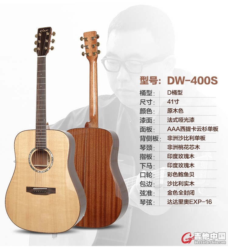 还有本人最近入手了一把鸽子DOVE -DW400的全单吉他,价格为3900.这价格个人觉得在全单琴里面是属于低的了,先不说音色,就单单从配置上来说,这个价格个人觉得比较低,就入手了。这么低的价格,所以还是担心配置的问题,是否有以次充好,就单单拿琴颈来说,这是我个人最关心的问题。