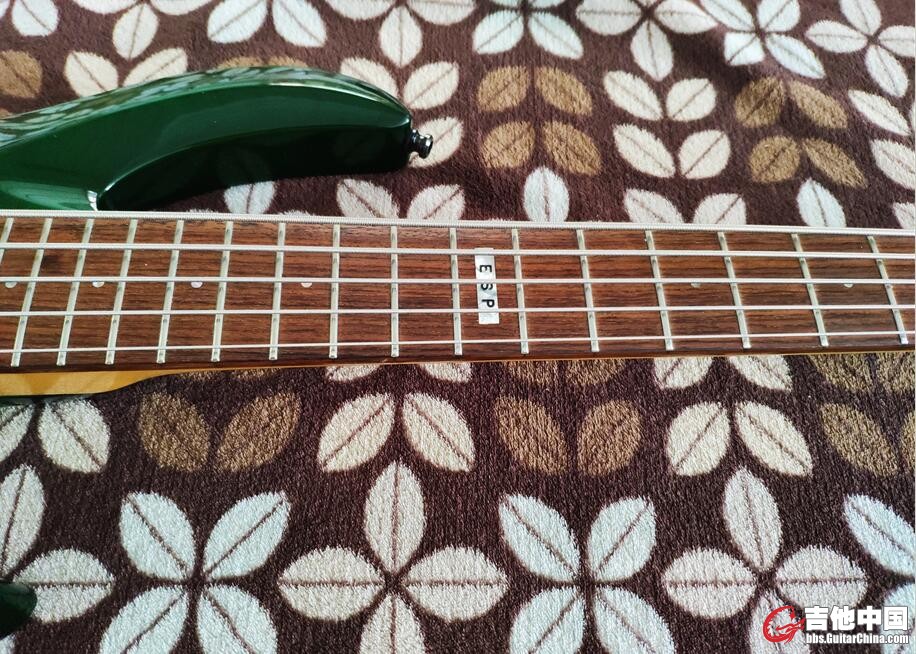 CUSTOM OLDER 非常耐看的墨绿颜色 琴径选用顶级枫木 光亮的和大理石一样 一点瑕疵都没有 玫瑰木指板 12品有ESP LOGO 控制系统两个前后音量加高低频 两个开关 一个主被动切换 一个主动模式状态下串并联 几乎适合所有风格 主动拾音器 背面采用ESP CI R 01松下电路板 上面有两个黑色微调钮 可以进一步设定自己喜欢的音色 连接线插口找工作室升级成了美产的 插一辈子都不会坏 值得一提的是这把琴的怪兽级琴桥 10颗螺丝固定 琴弦穿体琴桥 什么合金材料做的不清楚 个人打开过一次非常有份量 琴有微小米粒伤 整体非常新 带琴包一个 现在的esp都叫e2了 喜欢这牌子的不要错过了 价格7000到付