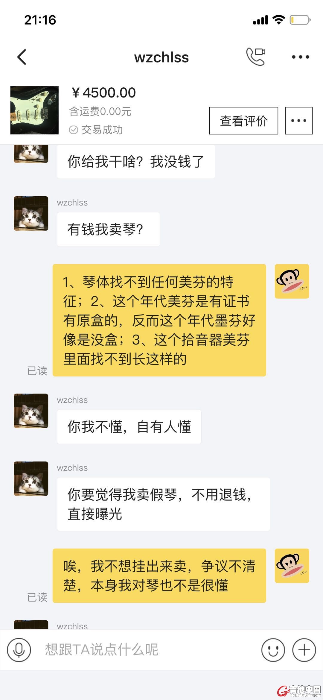 这人自己在闲鱼也卖过不少琴也卖过墨芬拾音器,买的时候却跟我打保标是原装美芬。