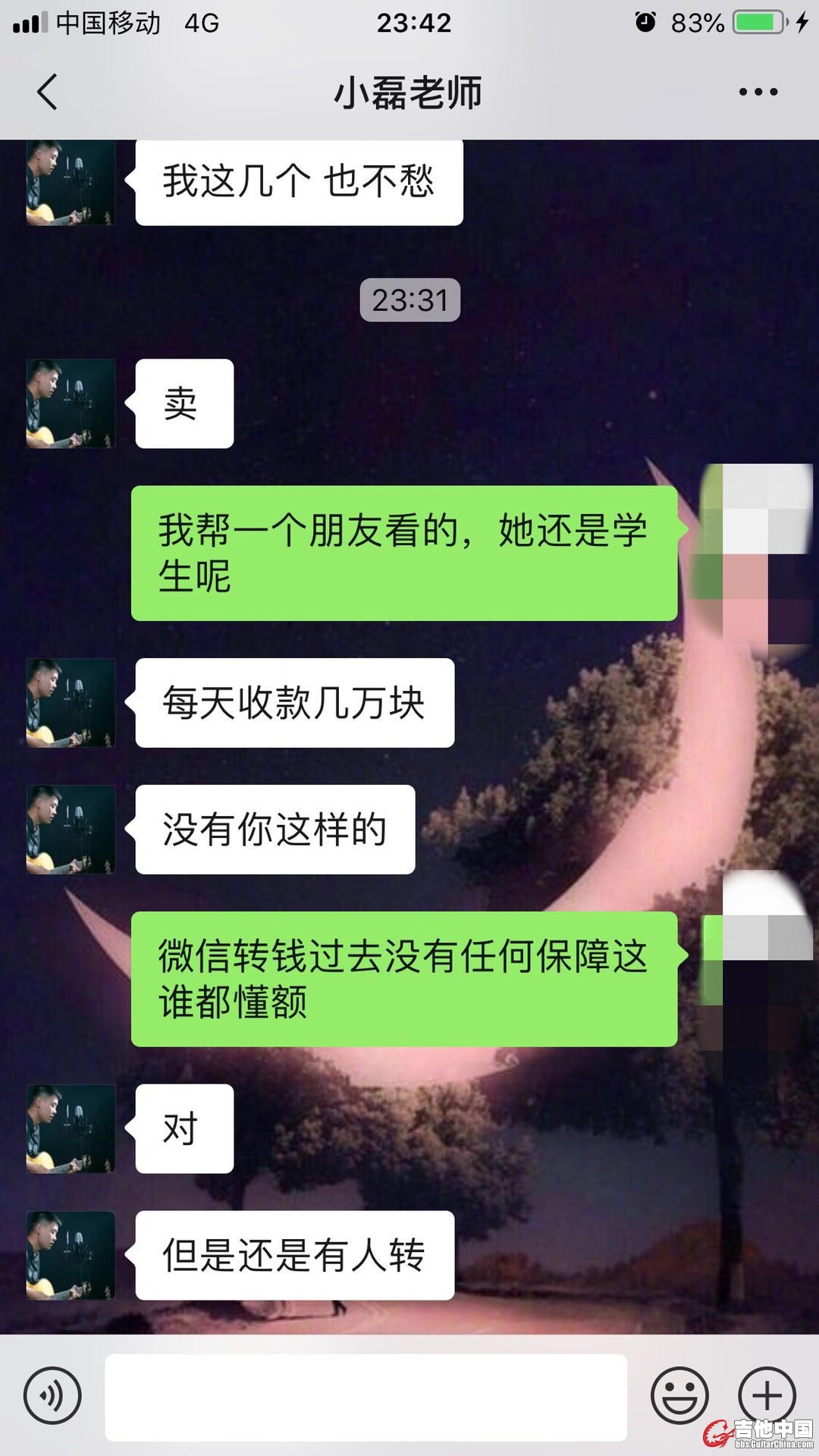 me1504 发表于 2019-5-27 02:03 其实不用多废话,一般要求微信先款的,我就不聊了,浪费这么多时间干嘛 发自吉他中国iPhone客户端 ...