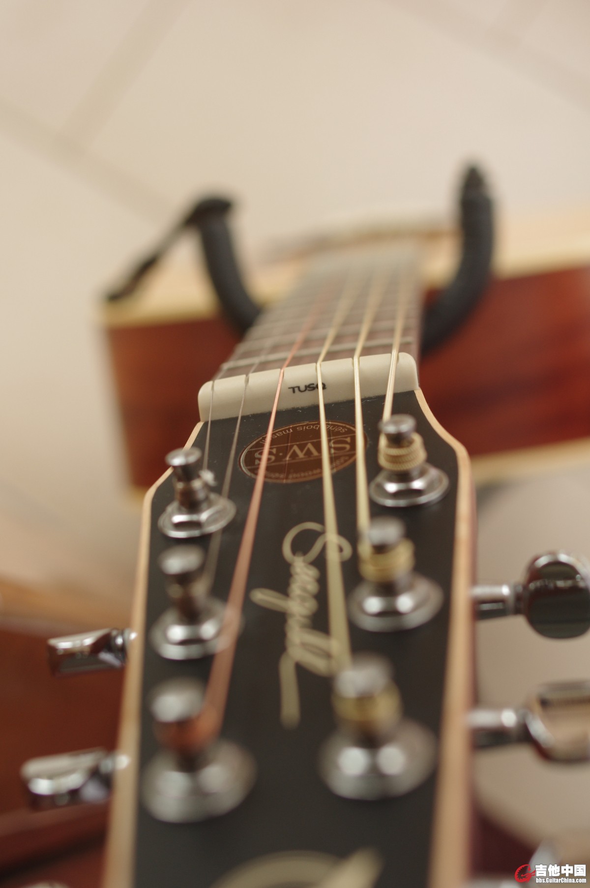 吉他是2016年在吉他中国论坛收的,当时想入手一把全单,在LL16和sws徘徊不定,偶然发现有琴友转让,成色接近新琴,所以当时就收了,还托人从广州背回来。因为自己有2把琴,这把基本没怎么弹,放着可惜,换点奶粉更实际。成色见图片(实拍),无明显磕碰。问题:去年冬天因干燥,背板与音梁有点脱胶,后来拿去琴行粘好,箱体内有胶水痕迹,见图片。 |