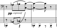 众所周知,贝多芬最伟大的那些作品都是在他耳聋之后创作出的。如他的第四、第五、第六、第七、第八、第九,还有未完成的第十号交响曲都是在出现听力障碍后创作的,集古典主义之大成,开浪漫主义之先河。尤其是第五号交响曲《命运》,是如此的悲壮,震撼人心!《第九交响曲》第四乐章之《欢乐颂》更是耳熟能详,千锤百炼后迸发出生命的火花!正印证了法国作家罗曼·罗兰的那句名言: “世界上只有一种英雄主义,就是看破生活的本质依旧热爱生活的热情。” 而失去了视力之后的莫奈亦是如此。他在自己隐居的地方建造了一座别具有东方特色的荷塘,在助手的协助下凭记忆调色,用心灵去创作。 莫奈认为,题材没有意义,而最重要的是题材与画家之间的关系。有很多评论家认为,莫奈为了传递转瞬即逝的浮光掠影,不惜以牺牲物象的形态与作画的秩序为代价。但事实上,莫奈已然把“光”当做了他一生绘画的物象与追求。他曾在早年对一位同行说过:“你在外出作画时,要试着忘记呈现在你眼前的一切客观事物,例如一栋房子、一棵树,或是一片田野。你只需要把它们都看作是一块蓝色的、粉色的、黄色的斑点,这样画出来的才会是你真正看到的物体。” 上面这幅就是莫奈一九零五年到英国所作的《伦敦国会大厦》。我们可以从这一系列的作品中看出,莫奈对人世间瞬息万变的光的追求和捕捉已经达到了一种天人合一的极致境界。由于他肉眼视觉受到很大障碍,遂将笔触伸向了自己心灵更深处,以“心眼”取代“肉眼”来重新审视这个大千世界。对于客观事物的细节更多地被舍去,画面中只留下了微妙的光影变幻,真正做到了印象画派所讲究的留住光,留住了瞬间的灵动与美好。 关于印象主义音乐也是兴起于二十世纪初。它一方面受印象主义画派的影响,刻意模糊所要表现对象的轮廓,而用倏忽朦胧的色彩来营造一种印象式的氛围;另一方面,它也受到以波德莱尔、魏尔伦和马拉美为代表的象征主义诗歌的启发,力图让音乐也似象征主义诗歌一般不用组织严密、条理清晰的音乐语言,而是以恍惚松散的音乐氛围来暗示,去象征。 一提到印象主义音乐,头一个闪入我们脑海的除了德彪西以外,就数与他同时代的拉威尔了。他们虽然被人冠以“印象主义音乐”的代表人物,但从其一生创作来看,印象主义风格仅是他们音乐创作中的一个方面而非全部。尤其是拉威尔,他虽然也追求乐思表现的自由,但却又被古典形式的条条框框牢牢地绑住了手脚。从他的很多作品都看得出,始终与传统保持着密切的联系。他的和声手法虽然新颖,但还是植根于传统的功能体系之中,他那清晰的旋律线与明快的节奏,就算和德彪西比起来也是迥然不同的。像这样带有印象主义倾向的作曲家还有法国的迪卡斯、鲁塞尔,英国的戴留斯、巴克斯,西班牙的法雅和意大利的雷斯皮基等。 此处,我们就以德彪西和他的创作为例,简单谈一谈印象主义美学是如何从视觉领域影响到音乐领域的。同时也能窥一斑而视全豹,一览印象派音乐所具有的特点。 首先,印象派音乐作品大多都结构短小,但组织却精巧独特,蕴含丰富的主题内涵。在这里,我们就以德彪西一九零九年创作的钢琴曲《帆》(Voiles)为例,来简单感受一下吧。 这首钢琴小品从结构上讲,是带有回旋性质与再现性质的单三部曲式。全曲结构短小(共六十四小节),却引入了由四个不同材料相互组合而成的四段主题印象。 印象A: 开篇第一至六小节,是一段建立在全音音阶上的主题材料。旋律大二度级进下行,后又突然一个八度回转,给人一种水上泛舟、烟波荡漾的感觉。 印象B:从第六小节开始,作曲家引入了新的音乐素材,如: 由这段新素材开始,逐渐跟前面的印象A相互融合,构成了作品的第二主题。 印象C: 从第二十三小节开始,调性依旧是建立在全音音阶之上。但这段印象的后半段由于织体的改变,极为巧妙地升华了主题。 印象D: 这是建立在五声调式基础上的一段主题,在这一印象主题中,调式被改变。作曲家将之前的全音音阶转到了降E羽调式之上。 一般说来,如果一部小小的作品中所包含了太多主题,必定会造成流水账般的混乱,整部作品会显得东拉西扯、不知所云。而此处《帆》的四个不同印象无疑也会造成了作品难有凝聚力的结果。巧妙的是,作者并没有运用传统创作中主题发展的手法,而是以罗列各种静态的意向以造成不同的听觉效果。在这些意向的连接上,他巧妙埋伏了一条贯穿全曲的持续低音“降Si”,再配合两大主要调式,将这四个主题和谐统一地组织在了这短短的小品当中,的确令人耳目一新。 再来,就是印象派音乐都很重视调式的表现力,调式的运用是印象派音乐家们塑造各种不同形象,营造另类意境的重要手段。他们虽会根据形象塑造的需要选择不同的调式,但却有别于传统的大小调体系,而是使用诸如中古调式、全音音阶或具有东方色彩的五声调式。 如德彪西最广为流传的钢琴曲之一《月光》(Clair de Lune),这是属于他从浪漫主义风格向印象主义过度时期的佳品。全曲以浓郁的降D大调为主基调,其间出现了多个中古调式,如多利亚调式: 再如展开部的第二插部,利地亚与混合利地亚调式的交替使用为旋律声部披上了一层捉摸不定的模糊感,也为乐思的发展提供了必要的铺垫和动力。 全音音阶与五声调式都有着一个