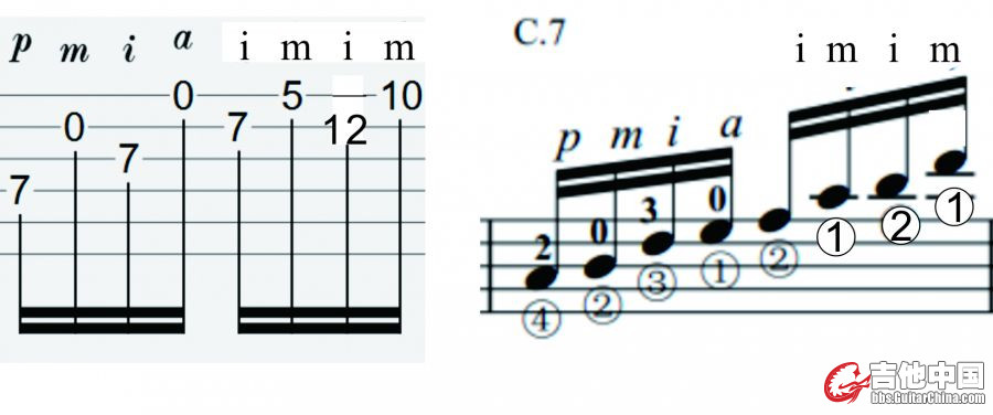 第二个问题是缺乏童子功。最近两个月,在攻余青平版的《渔舟唱晚》,现在已经会弹天气预报之前的段落,从天气预报开始,就弹不利索,尤其是天气预报当中的轮指,怎么也弹不好,天气预报后面的第78小节(见图),