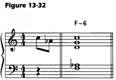 VI级和弦经常被重编为V级和弦。在Bb调的I-VI-II-V(BbΔ, G-7, C-7, F7)进行中,G-7是VI级和弦,经常被改为G7。这构造了更流畅和弦伴奏:G7比G-7更流畅地解决到C-7。G7比G-7提供了更丰富的和声可能:G7b9, G7alt, G7#5等等。在III-VI-II-V中也有这样的情况(Bb调的D-7, G-7, C-7, F7),其中的VI级和弦G-7经常被改编为G7。在I-VI-II-V和III-VI-II-V中,许多会用一个减七和弦来代替V级和弦(在Bb调的I-VI-II-V进行中,用Bο来代替G-7)。这样就构造了半音进行的贝司旋律(Bb, Bο, C-7, F7)。Bο其实就是一个G7b9和弦,因为Bο的和弦音(B, D, F, Ab)其实就是G7b9的三音,五音,七音和降九音(见图13-77)。
