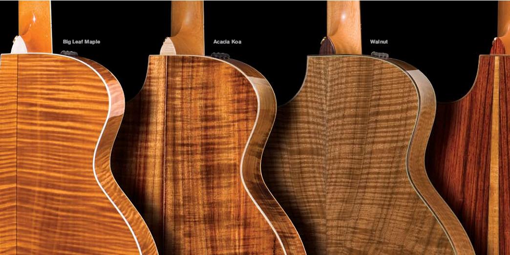 早在1974年的时候,枫木就被认为是除了传统玫瑰木和桃花心木之外的不二选择。现如今,枫木制作的乐器在舞台表演和录音棚中都有相当不错的表现。枫木本身属于比较密的木头,木质很紧,形状笔直,他出来的声音则是有点扁,明亮,比较平稳,在合奏合唱中会发现声音很有穿透力,也由于这些特性,它的是反应不是很好。另外一点是枫木是种很漂亮的木头,他能做的染色很多,纹路也有很多变化的风格,絮状的、火焰状的、类小提琴型的,这也使得枫木是最漂亮的原料之一。
