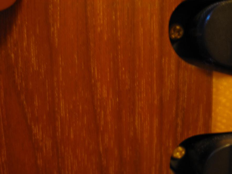 琴整体是木纹色,旋钮,琴桥,金属的位置全是金黄色,手感·音色相当不错,采用floyd roses开发的双向颤音系统,