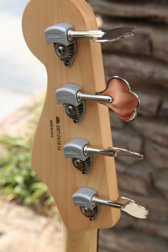 两个Samarium Cobalt Noiseless爵士贝司拾音器,石墨强化琴颈,玫瑰木指板,鲍鱼壳镶嵌的点品。高精细的琴枕和品丝做工。顶级桤木琴体,琴弦穿体式琴桥5点式琴颈琴体接合。并更加适合高把位的演奏。经典外观,做工精细,手感舒适,独奏明亮扎实,清晰华美。布鲁斯深沉粘合,SOLO连贯有力,节奏穿透力强,适用于摇滚,jazz,流行,乡村,blues,funk等多种音乐风格 |